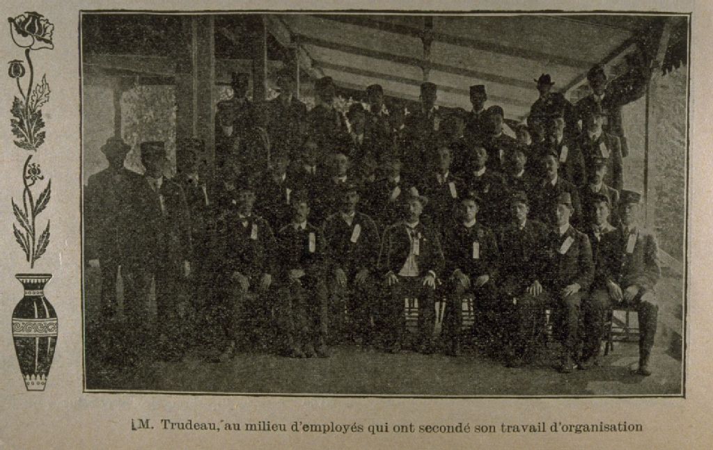 Le pique-nique des p'tits chars M. Trudeau au milieu d'employés qui ont secondé son travail d'organisation