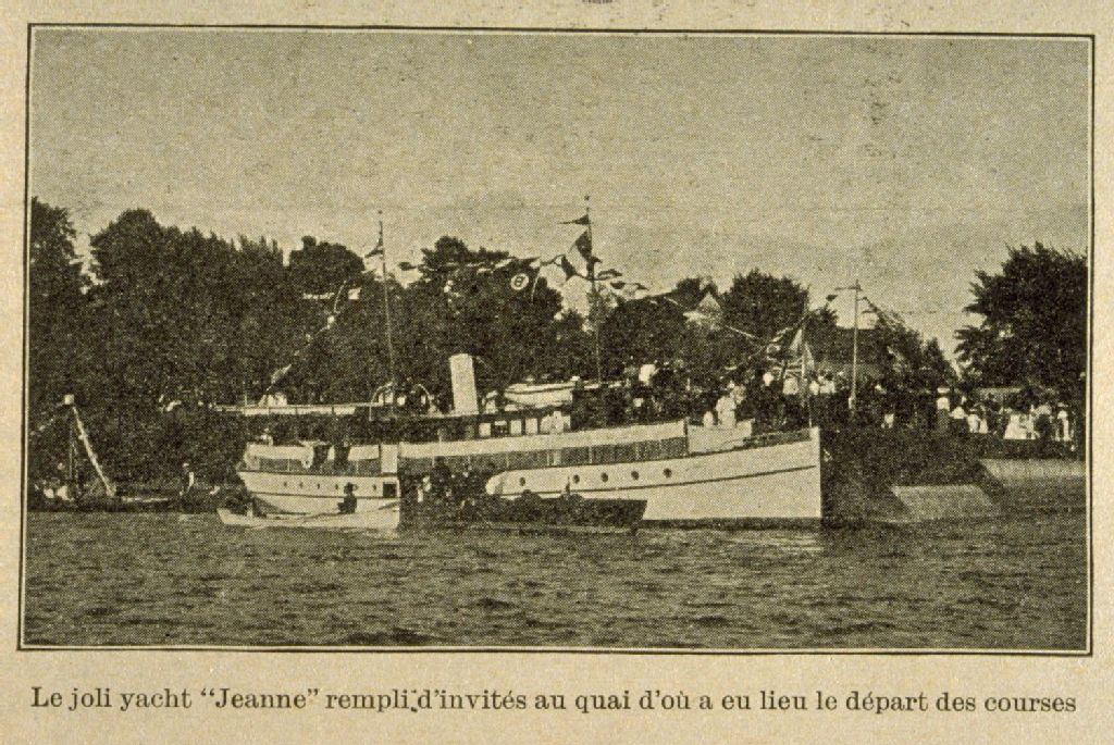 Fête nautique à Boucherville le joli yacht "Jeanne" rempli d'invités au quai d'où à eu lieu le départ des courses
