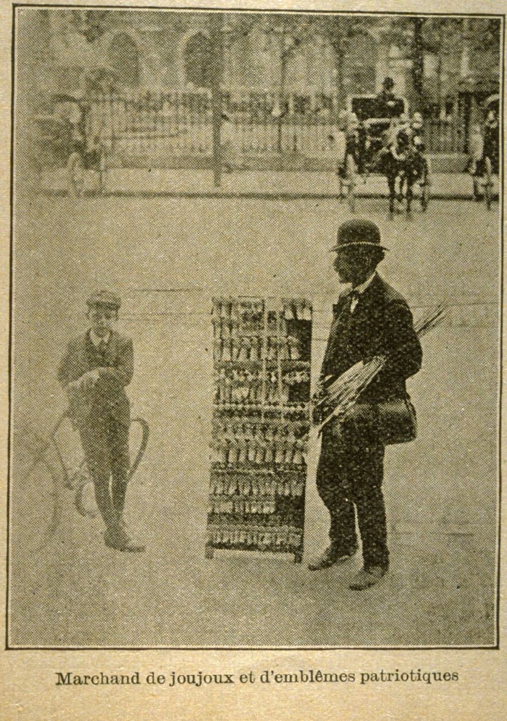 Les petits métiers de la rue marchand de joujoux et d'emblêmes patriotiques