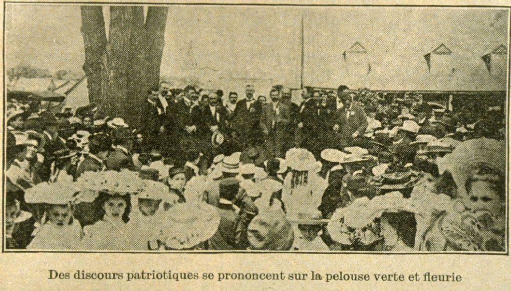 Excursionnistes dans la ville hospitalière de Joliette des discours patriotiques se prononcent sur la pelouse verte et fleurie