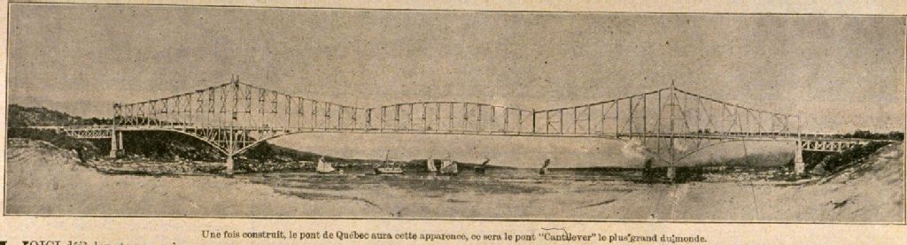 Le grand pont de Québec une fois construit le pont de Québec aura cette apparence, ce sera le pont "Cantilever" le plus grand du monde