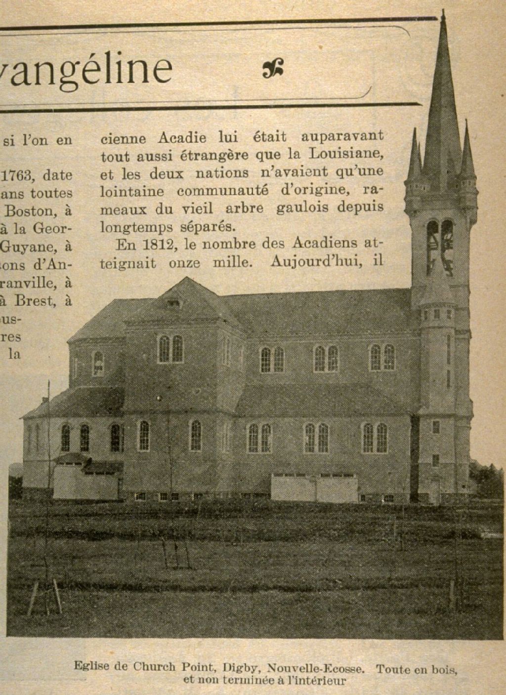 L'Acadie la terre d'Évangéline église de Church Point, Digby, Nouvelle-Écosse, toute en bois et non terminée à l'intérieur