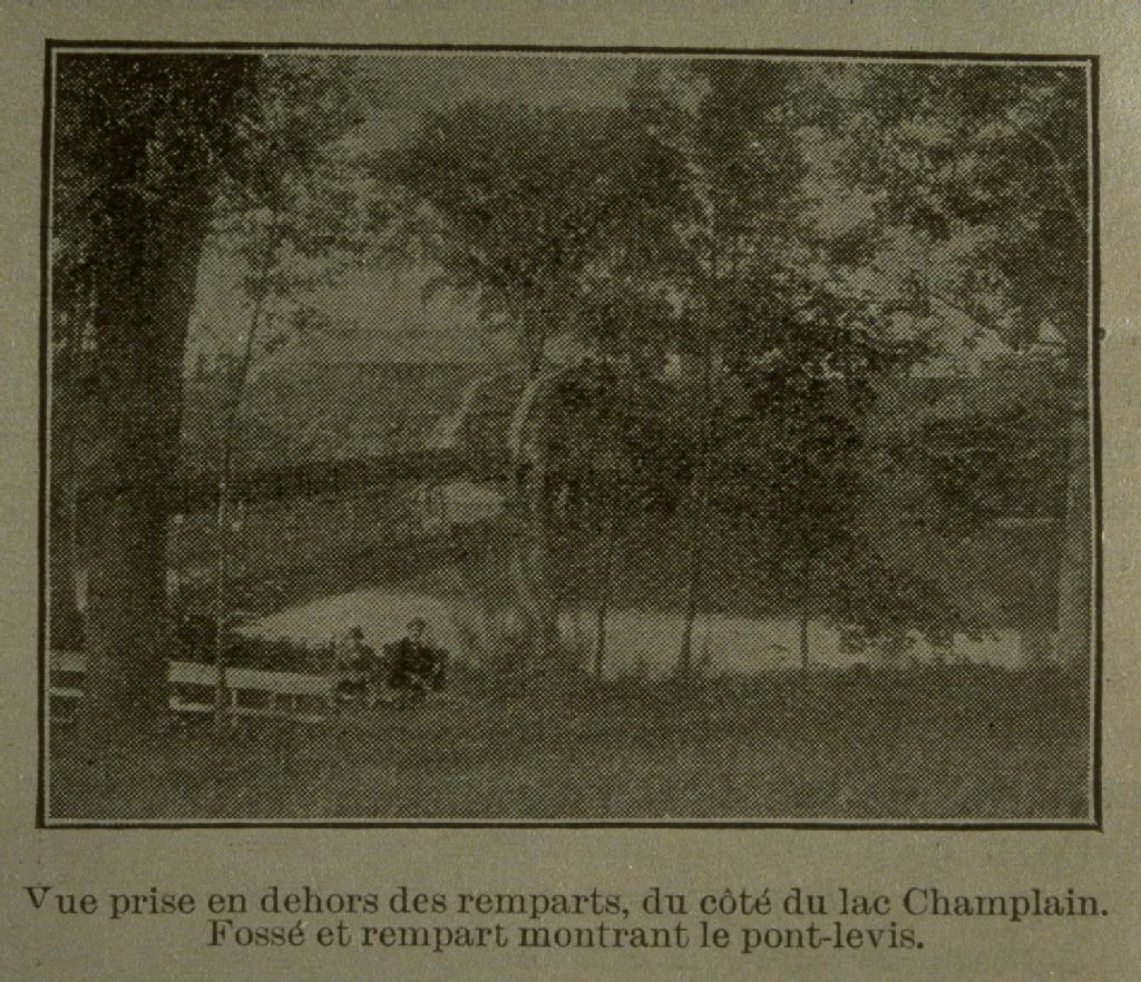 L'Île aux Noix vue prise en dehors des remparts du coté du lac Champlain, fossé et rempart montrant le pont levis