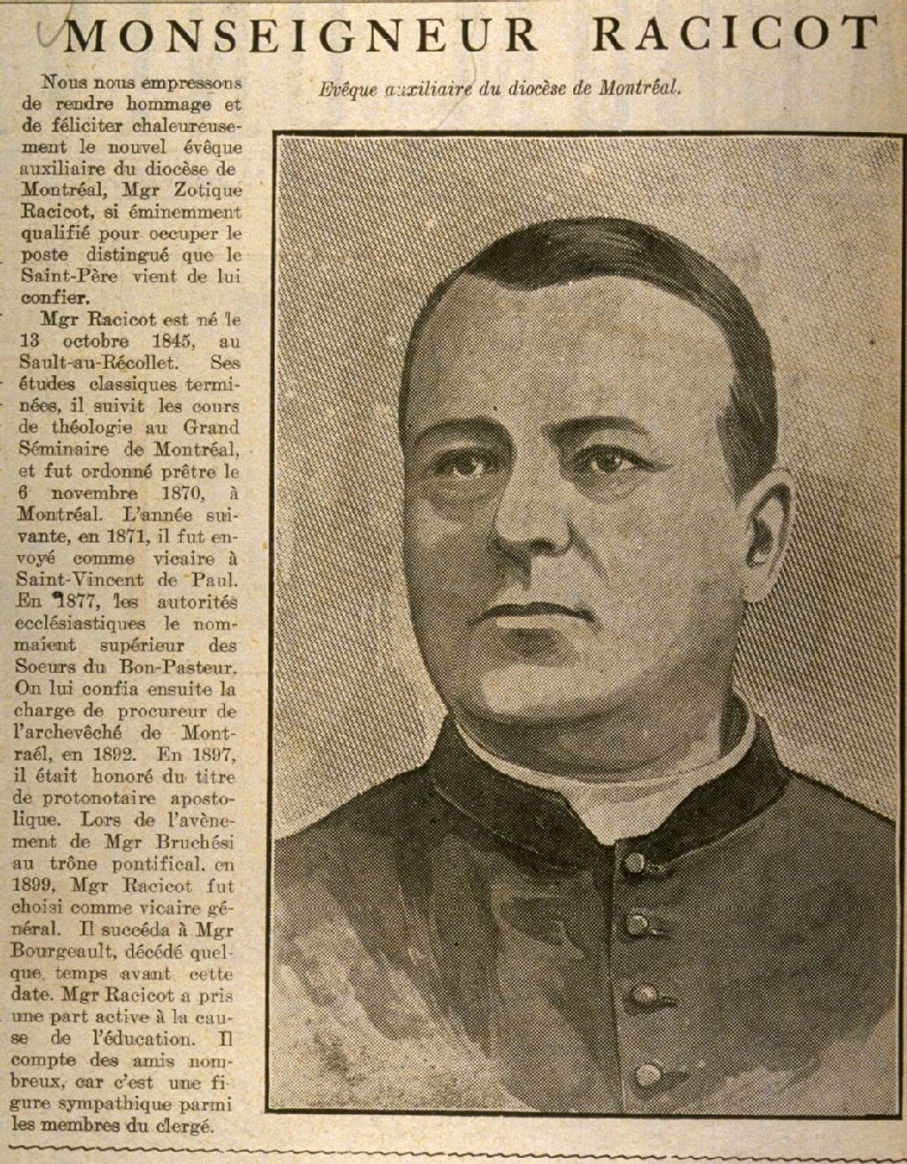 Monseigneur Racicot Évêque auxiliaire du diocèse de Montréal