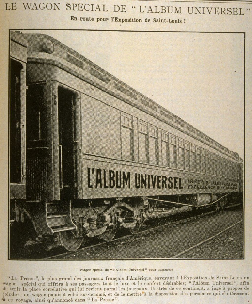 Le wagon spécial de l'Album universel En route pour l'Exposition de Saint-Louis