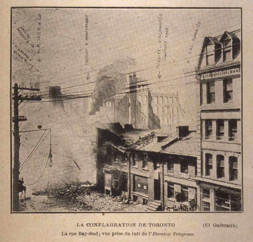 La conflagration de Toronto La rue Bay-Sud, vue prise du toit de l'Evening Telegram /