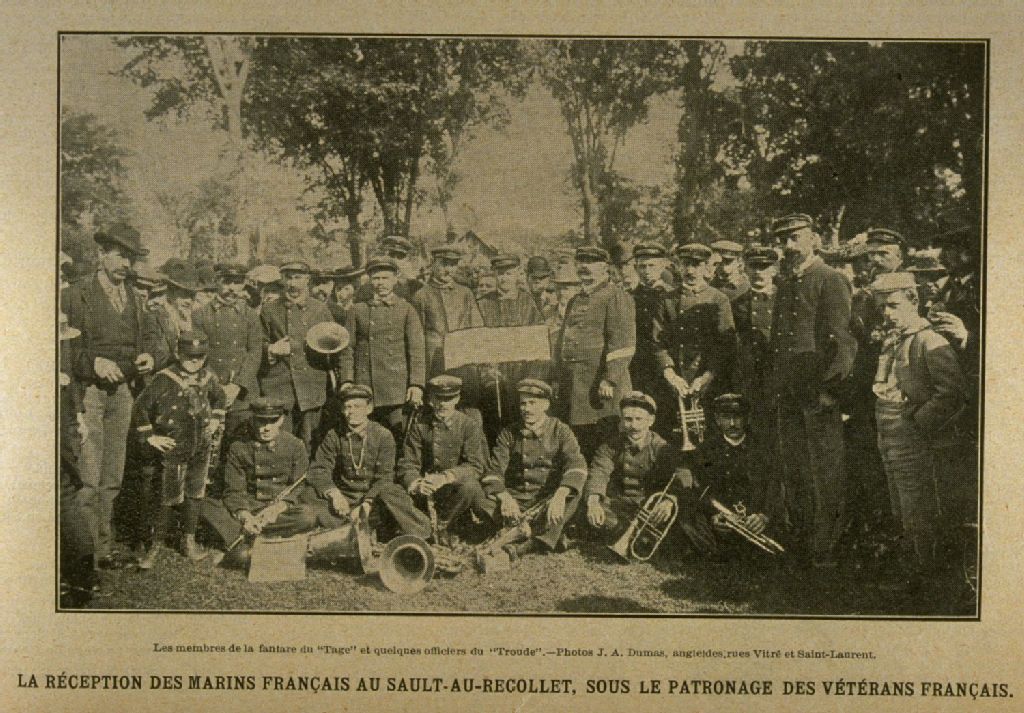 La réception des marins Français au Sault-au-Récollet, sous le patronage des vétérans Français Les membres de la fanfare du "Tage" et quelques officiers du "Troude" /