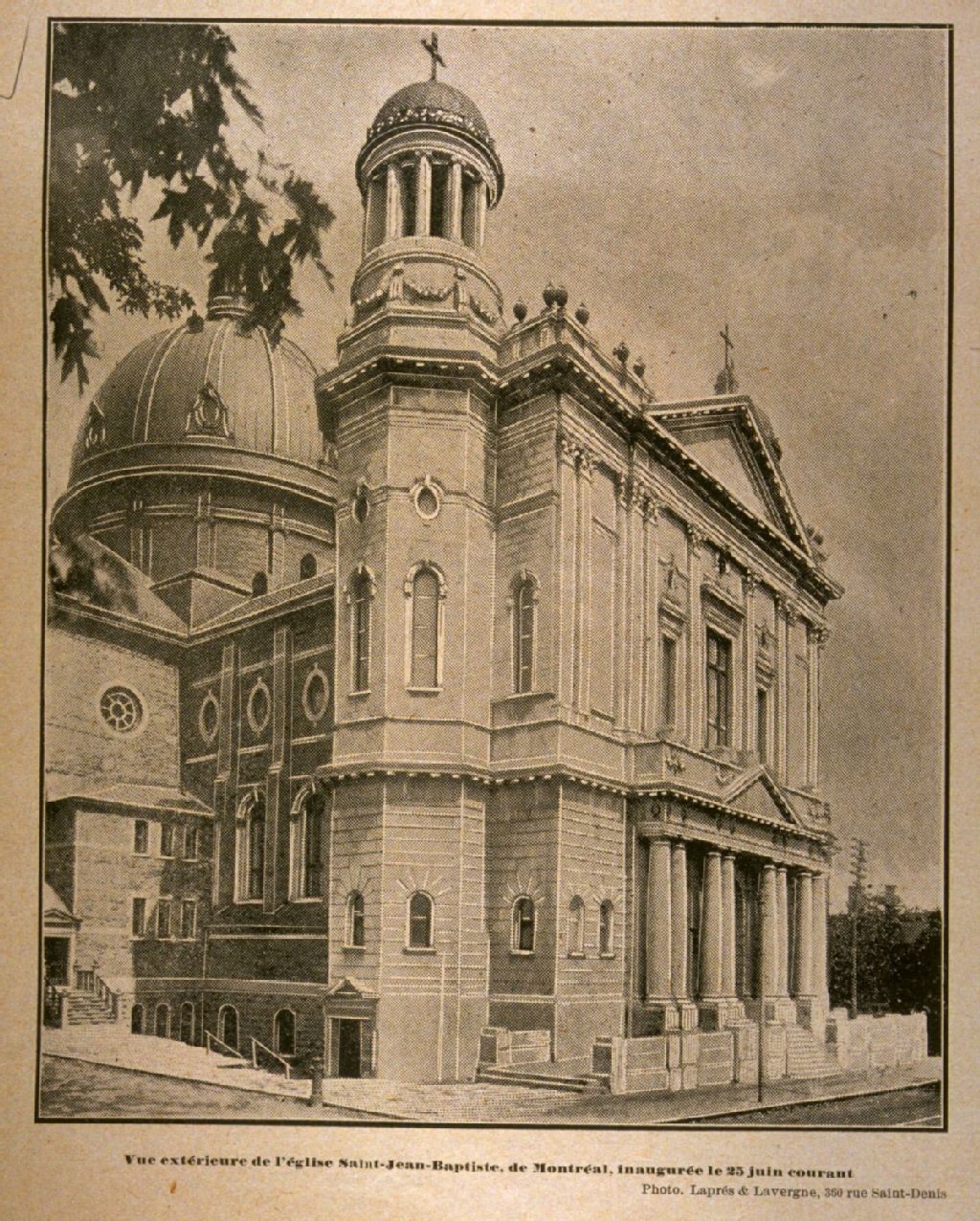 Vue extérieure de l'église Saint-Jean-Baptiste, de Montréal, inaugurée le 25 juin courant