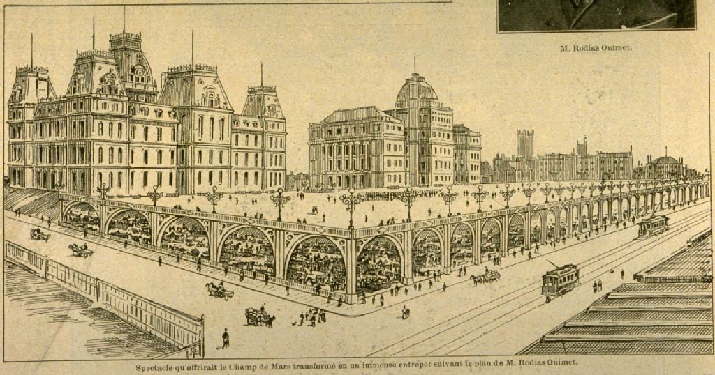 Les grands projets Spectacle qu'offrirait le Champ-de-Mars transformé en un immense entrepôt suivant le plan de M. Rodias Ouimet