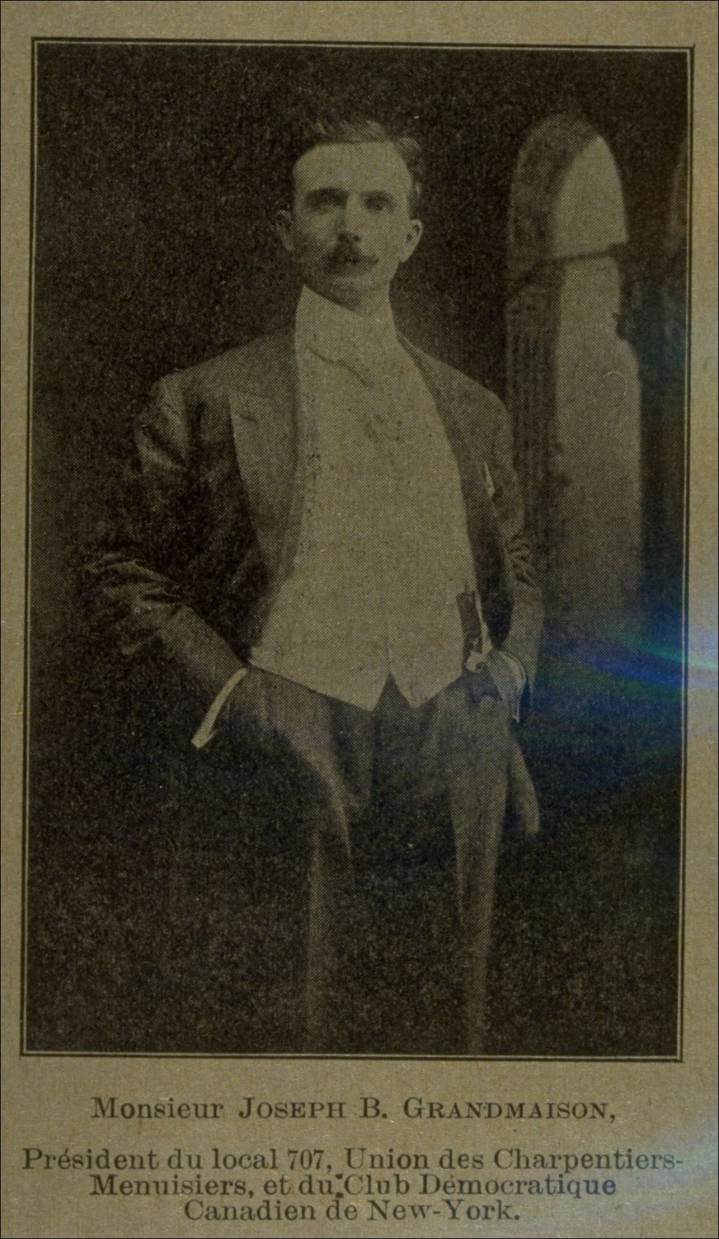 Monsieur Joseph B. Grandmaison président du local 707 Union des charpentiers-menuisiers et du Club démocratique canadien de New-York
