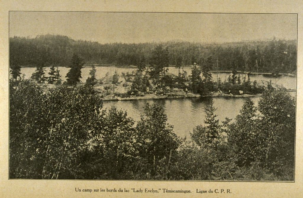 Un camp sur le bord du lac Lady Evelyn, Témiscamingue, ligne du C.P.R.