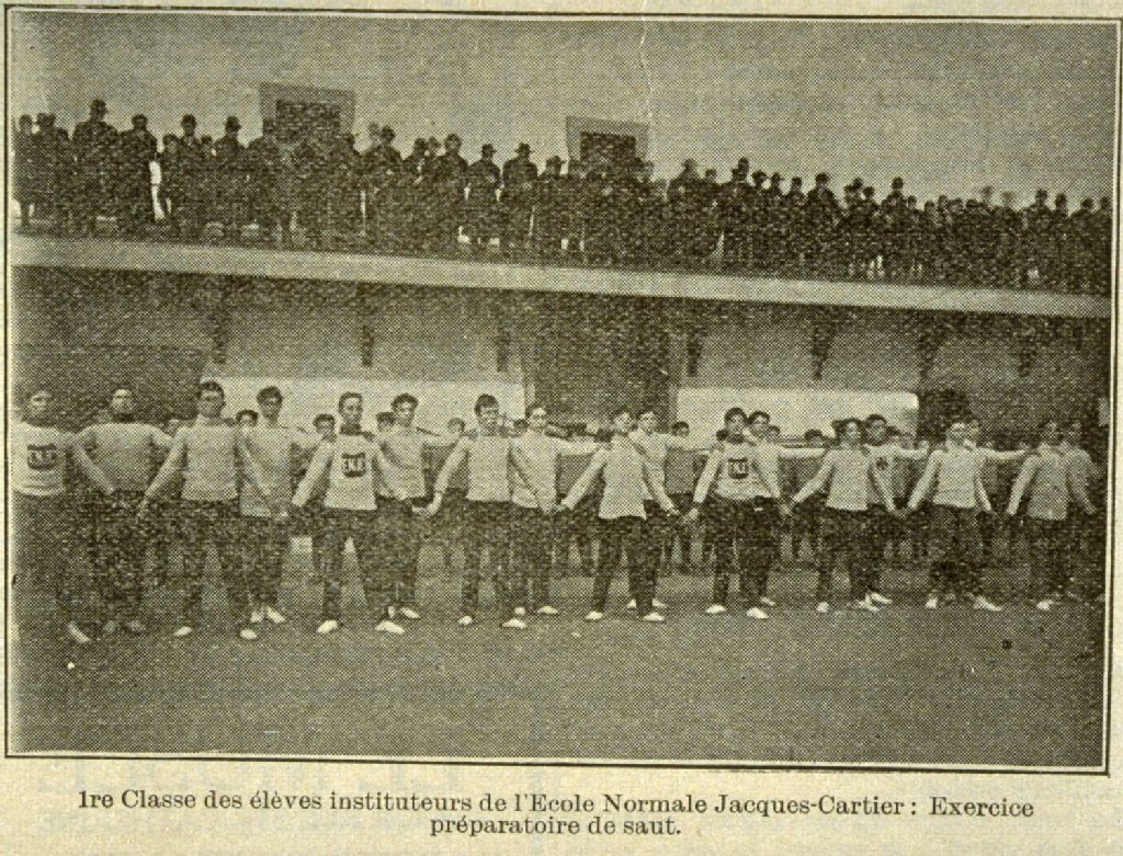 1ère classe des élèves instituteurs de l'école normale Jacques- Cartier exercice préparatoire de saut