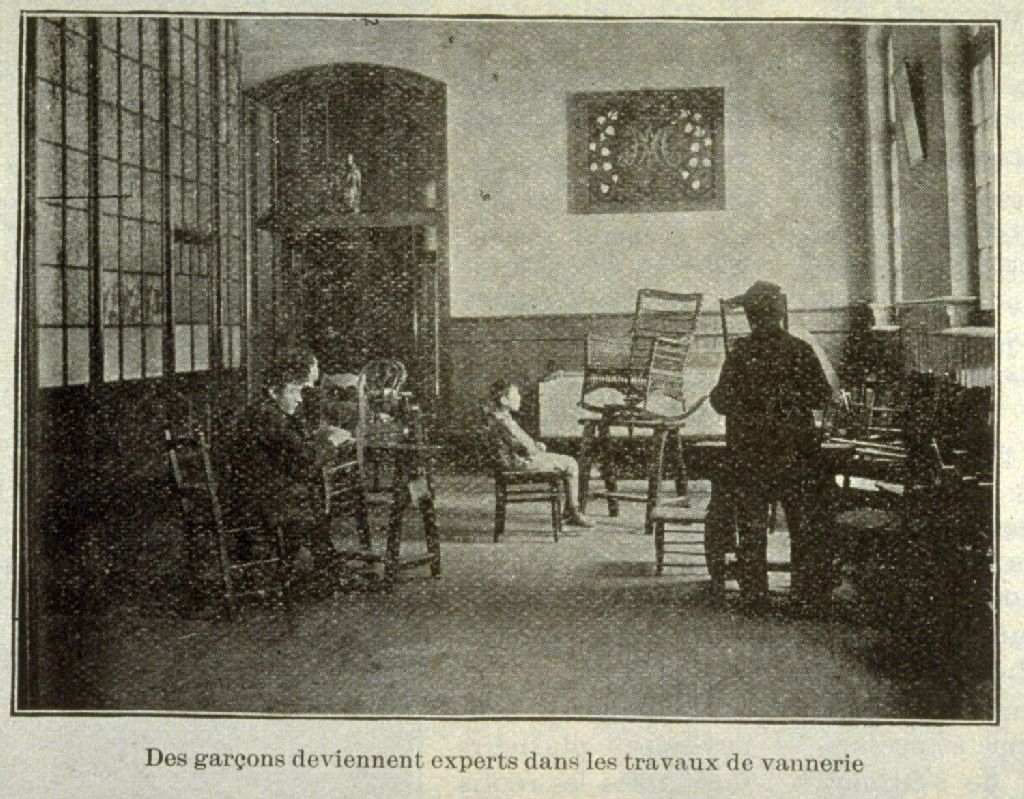 L'institution des jeunes aveugles des garçons deviennent experts dans les travaux de vanneries