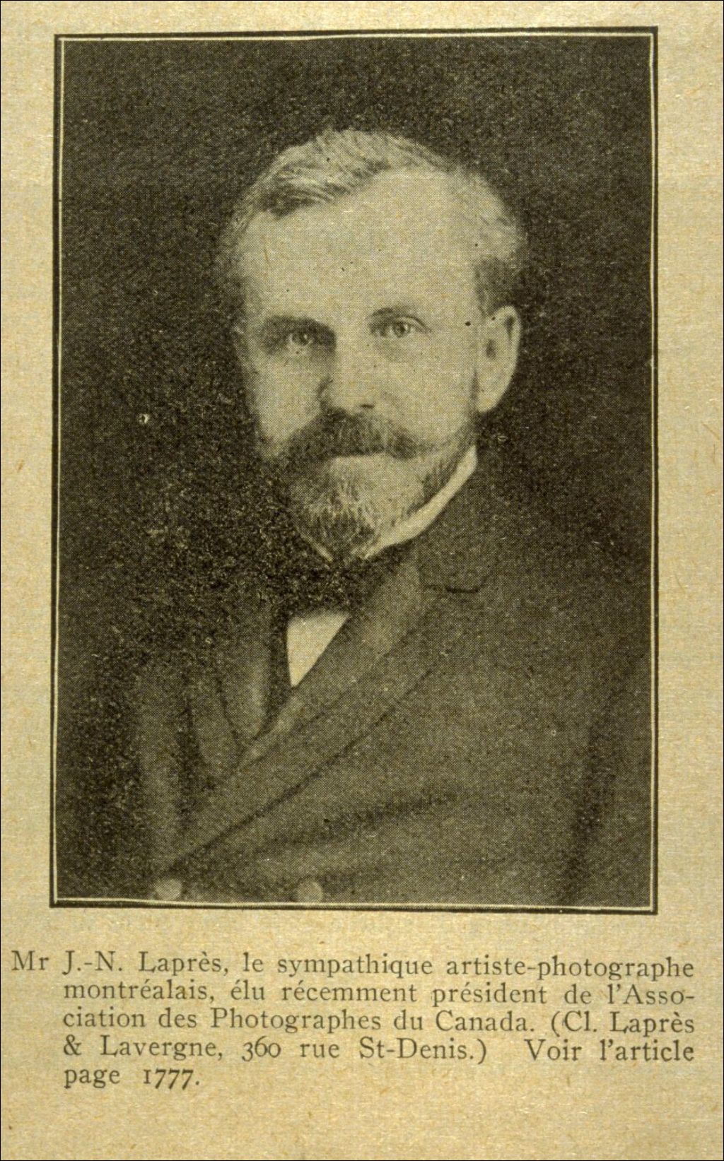 Mr J.-N. Laprès, le sympathique artiste-photographe montréalais élu récemment président de l'Association des photographes du Canada