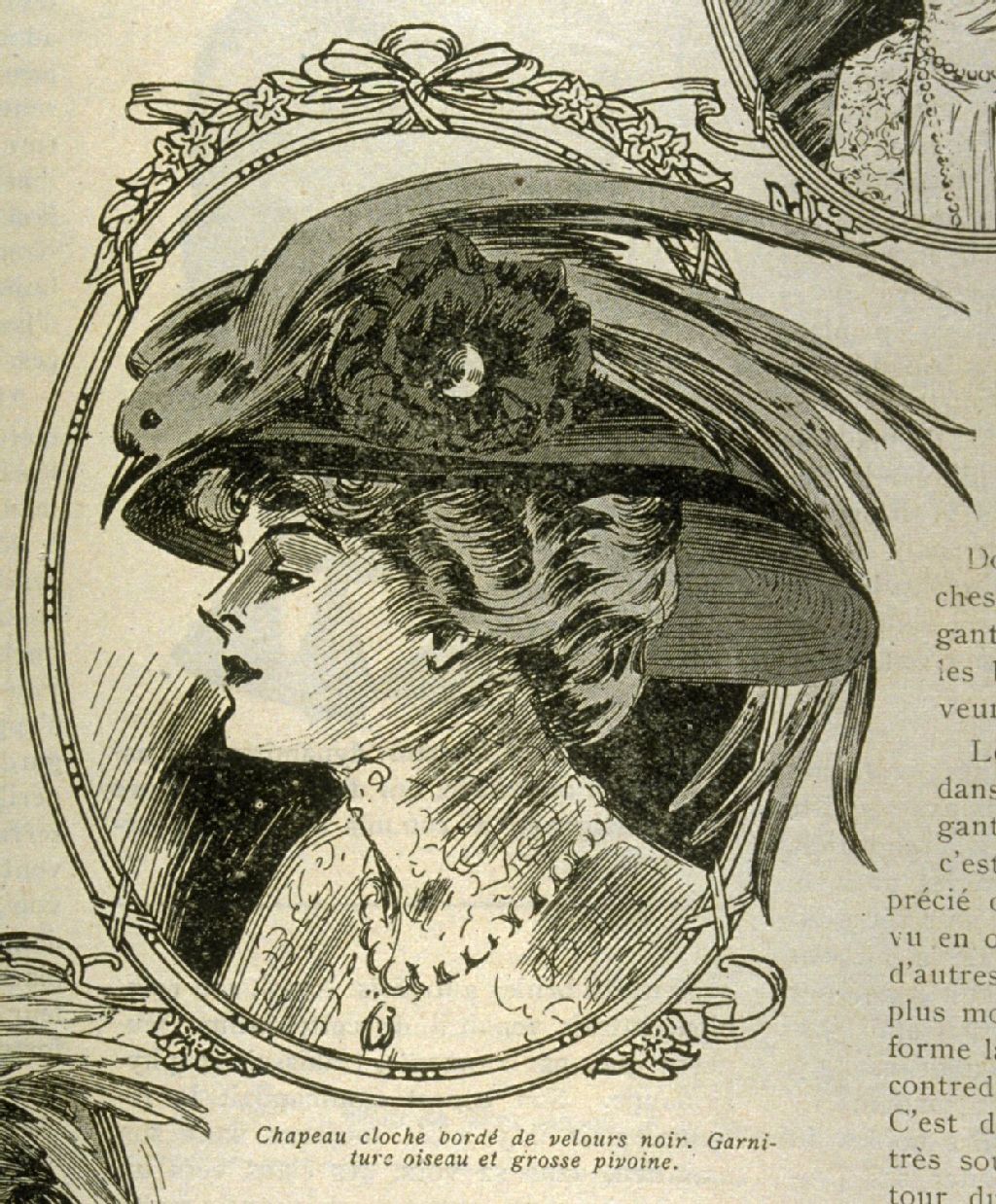 Courrier de la mode chapeau cloche bordé de velours noir