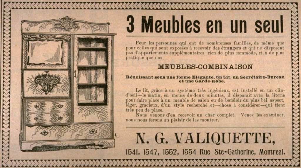 Trois meubles en un seul Réunissant sous une forme élégante, un lit, un secrétaire-bureau et une garde-robe