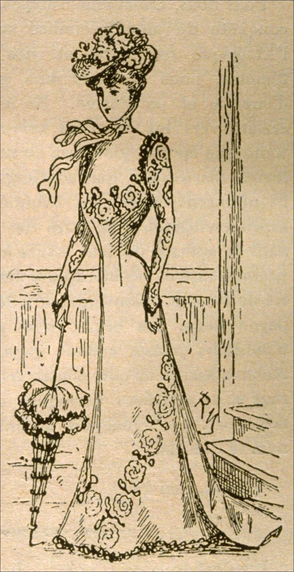 Courrier de la mode [Robe en soie, rouge assez vif, se décolletant sur une chemisette de veloutine d'un ton un peu plus clair]