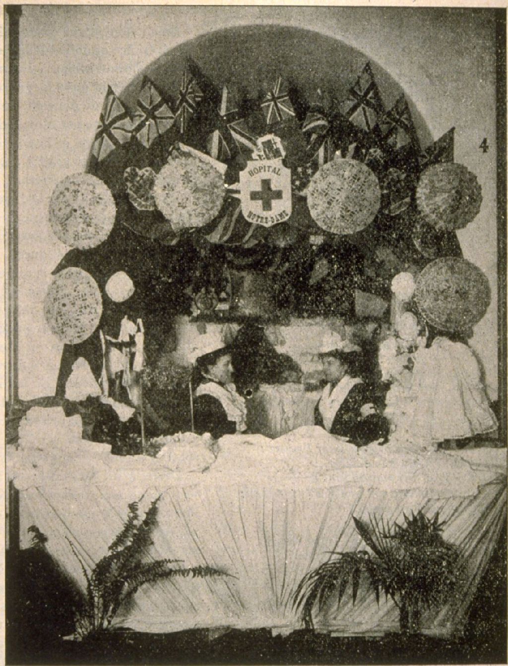 Vue de quelques comptoirs du bazar de charité en faveur de l'hôpital Notre-Dame Lingeries et objets utiles /