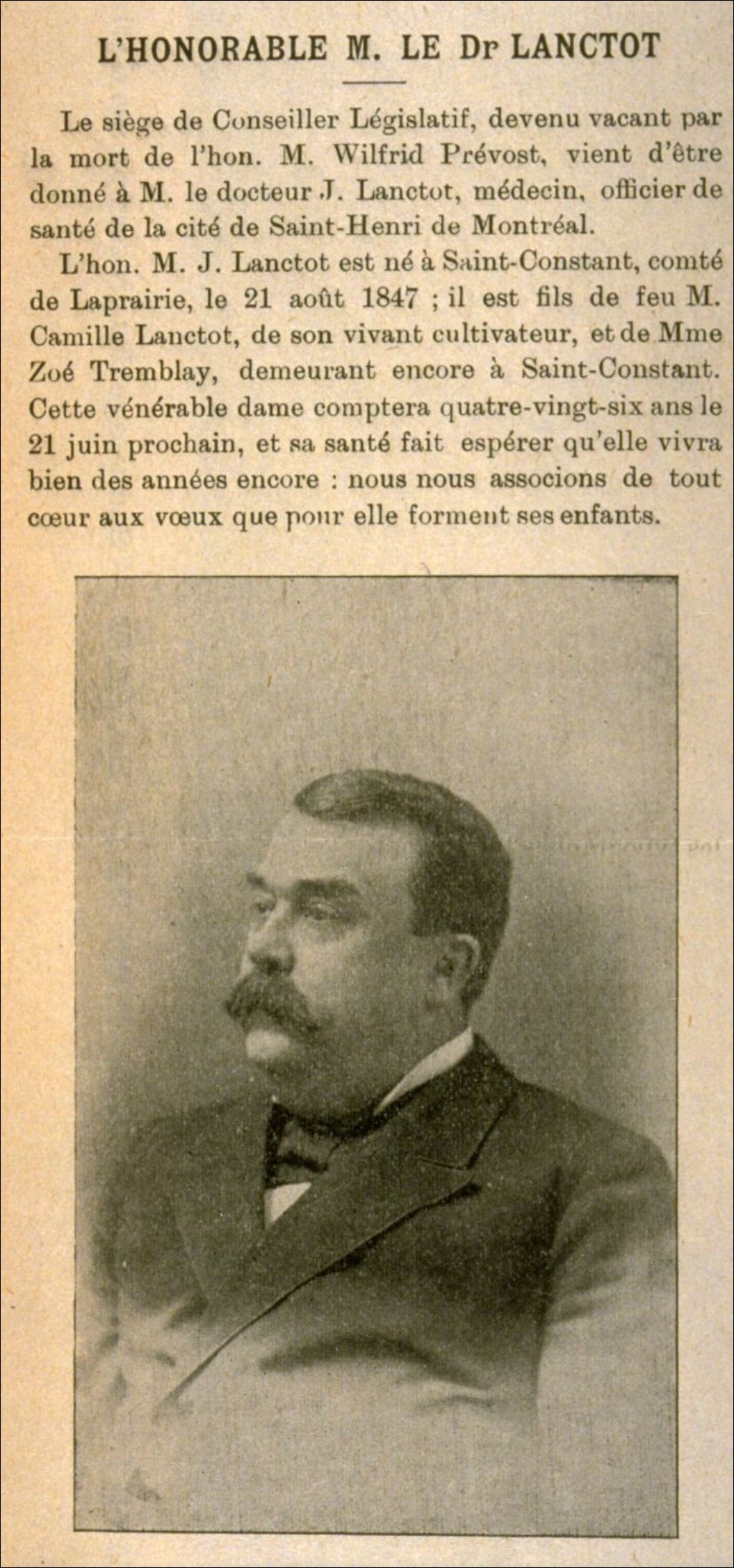 L'honorable M. le Dr Lanctot