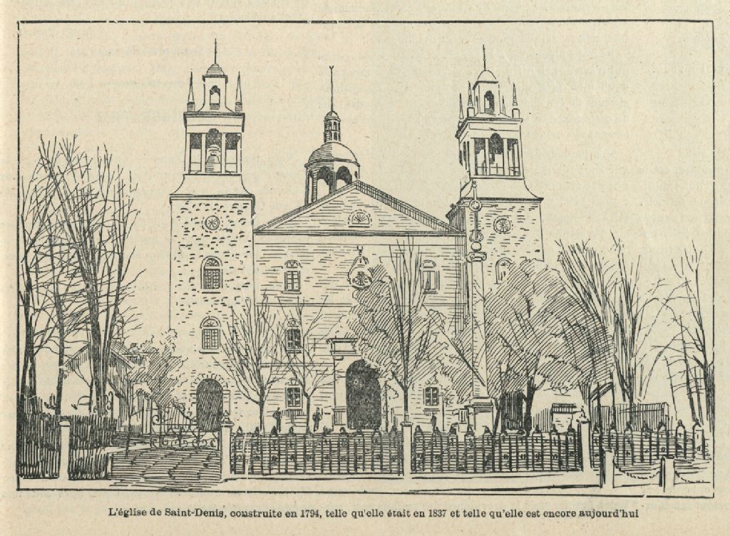 L'église de Saint-Denis, construite en 1794, telle qu'elle était en 1837 et telle qu'elle est encore aujourd'hui