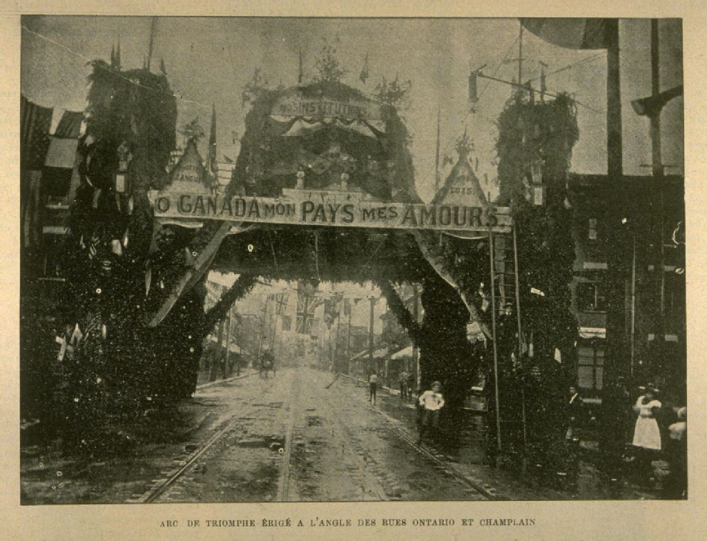 La fête nationale dans la partie Est de Montréal Arc de triomphe à l'angle des rues Ontario et Champlain /