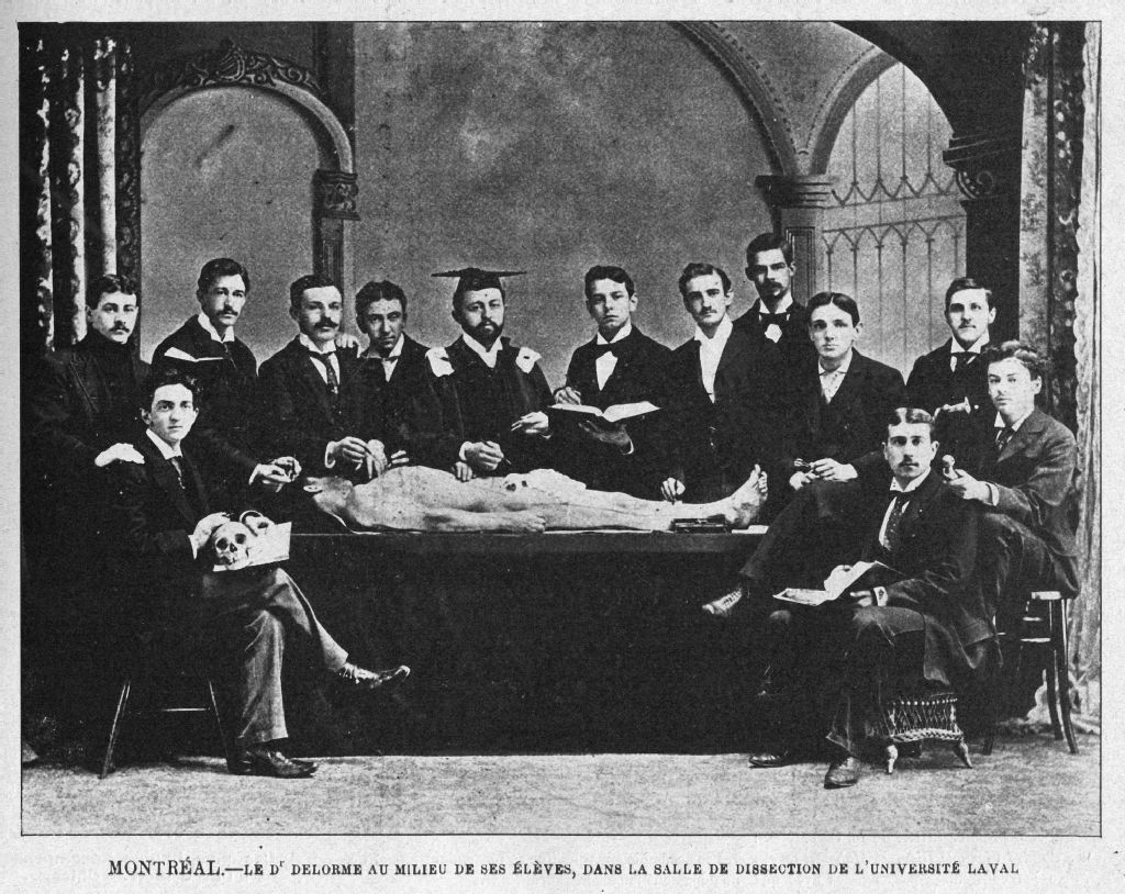 Montréal Le Dr Delorme au milieu de ses élèves, dans la salle de dissection de l'Université Laval