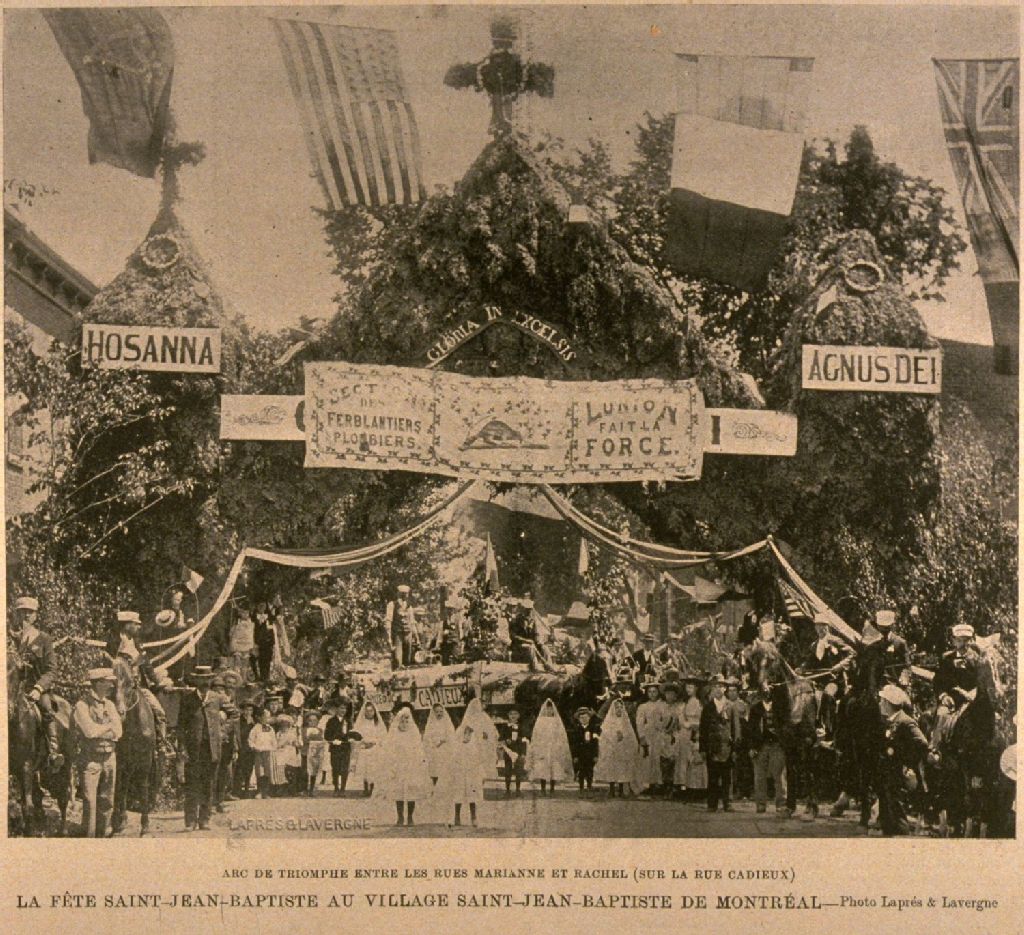 La fête Saint-Jean-Baptiste au village Saint-Jean-Baptiste de Montréal Arc de triomphe entre les rues Marianne et Rachel (sur la rue Cadieux) /