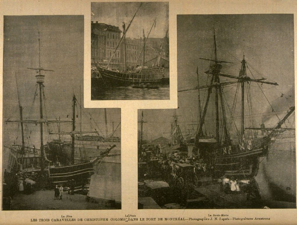 Les trois caravelles de Christophe Colomb dans le port de Montréal la Nina ; la Pinta ; la Santa-Maria /