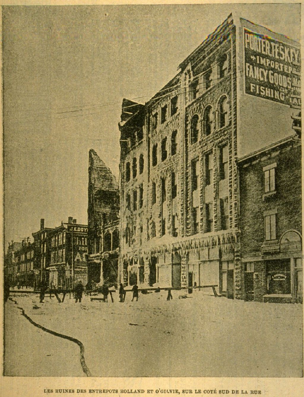Le grand incendie de la rue Saint-Jacques Les ruines des entrpôts Rolland et O'Gilvie, sur le côté Sud de la rue /