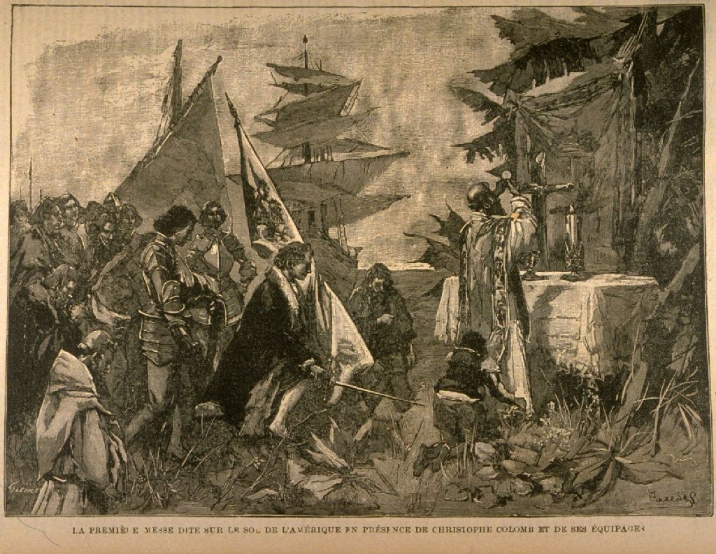 La première messe dite sur le sol de l'Amérique en présence de Christophe Colomb et de ses équipages