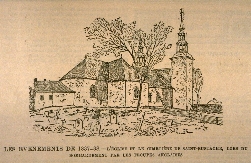 Les événements de 1837-38 L'église et le cimetière de Saint- Eustache, lors du bombardement par les troupes anglaises