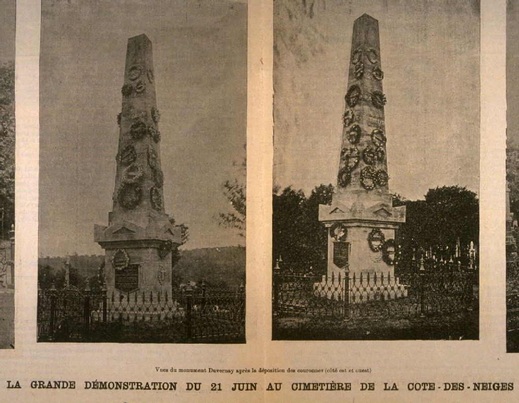 La grande démonstration du 21 juin au cimetière de la Côte-des- Neiges Vues du monument Duvernay après la déposition des couronnes (côté Est et Ouest) /