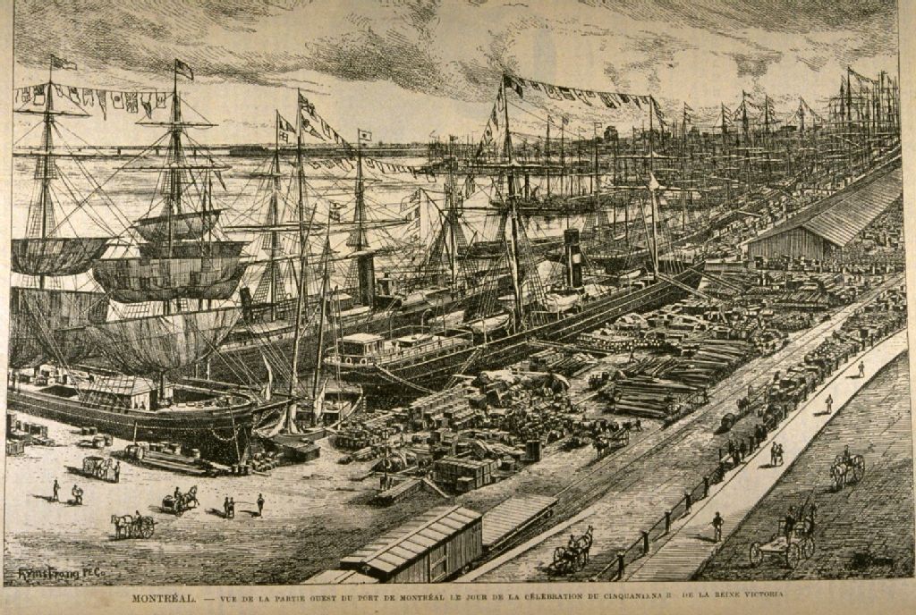 Vue de la partie Ouest du port de Montréal le jour de la célébration du cinquantenaire de la reine Victoria