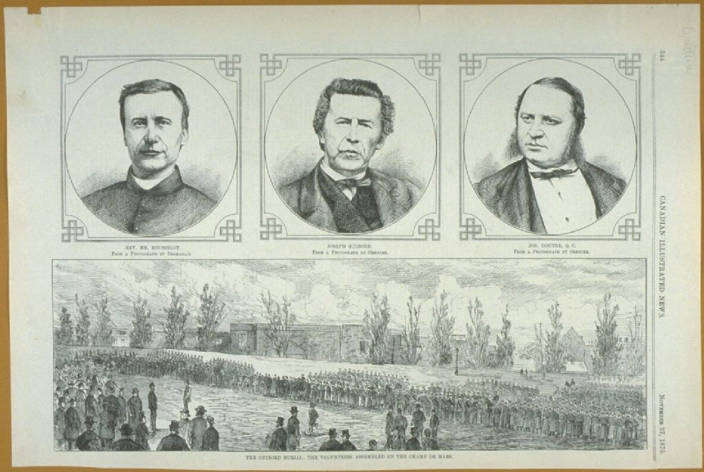 Obsèques de Joseph Guibord + dessin de R.P. Rousselot + Joseph Guibord + Joseph Doutre