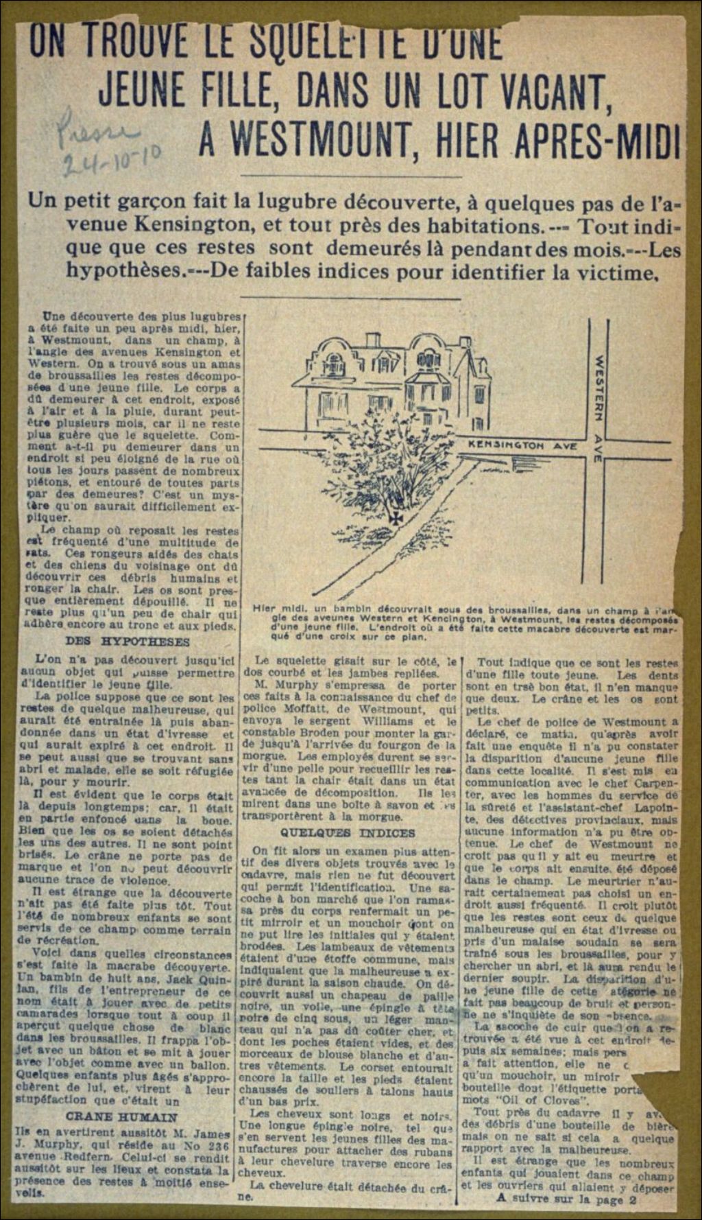 Découverte d'un cadavre + dessin d'une maison