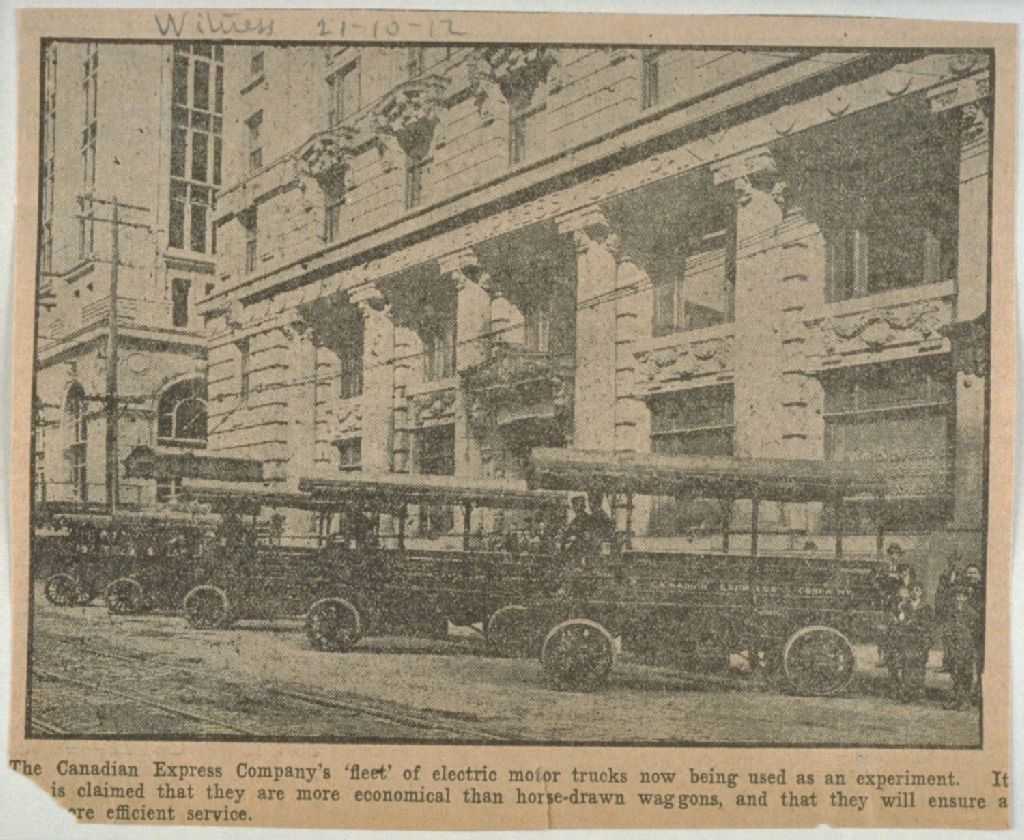 Camions électriques utilisés par la Canadian Express Co.- rue McGill