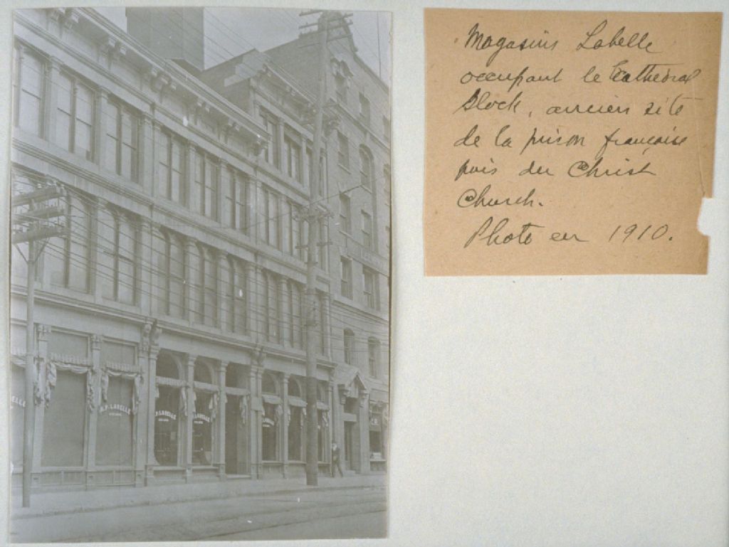 Ancien site qui fut occupé par la suite par la Old Christ Church Cathedral et le magasin H.P. Labelle - rue Notre-Dame