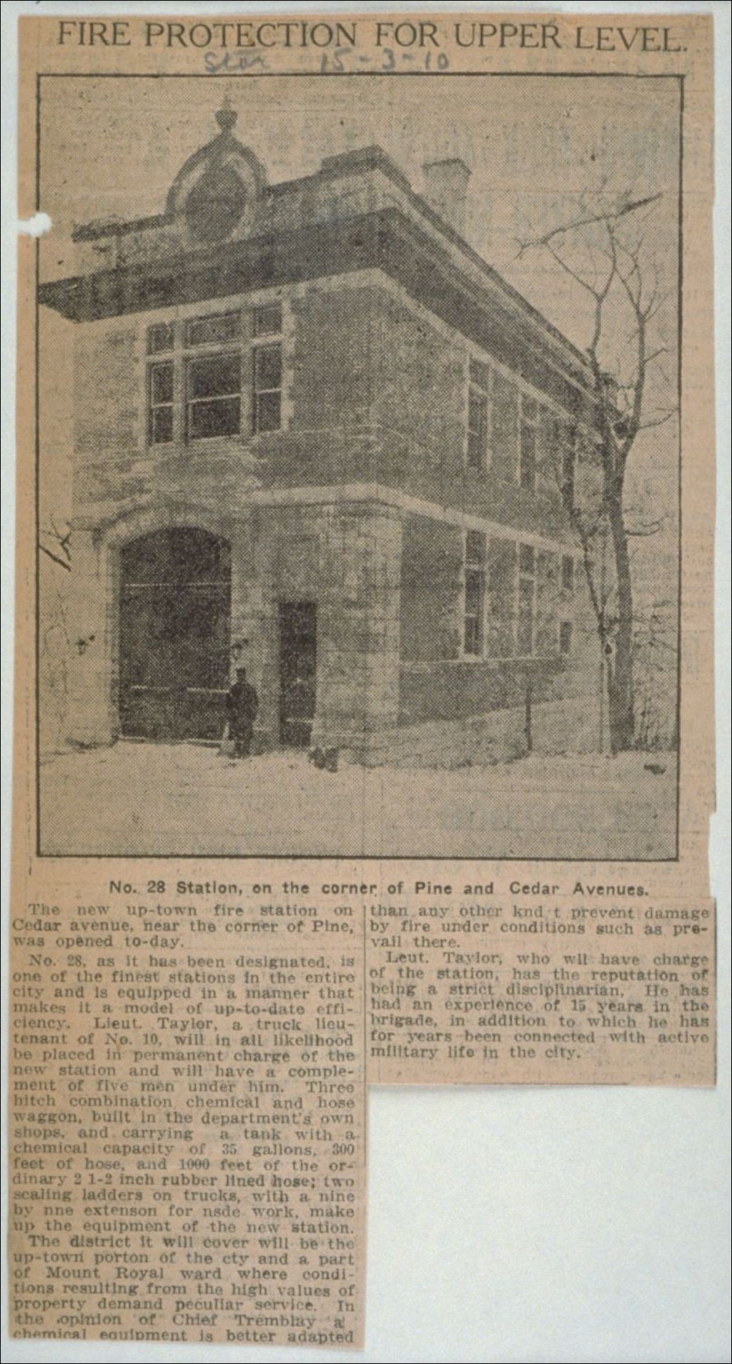 Caserne de pompiers no 28 - coin avenue des Pins/Cedar