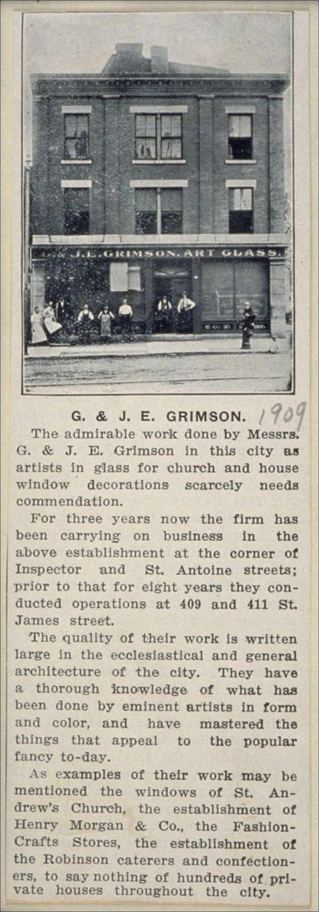 G. & J.E. Grimson - coin St-Antoine/Inspecteurs