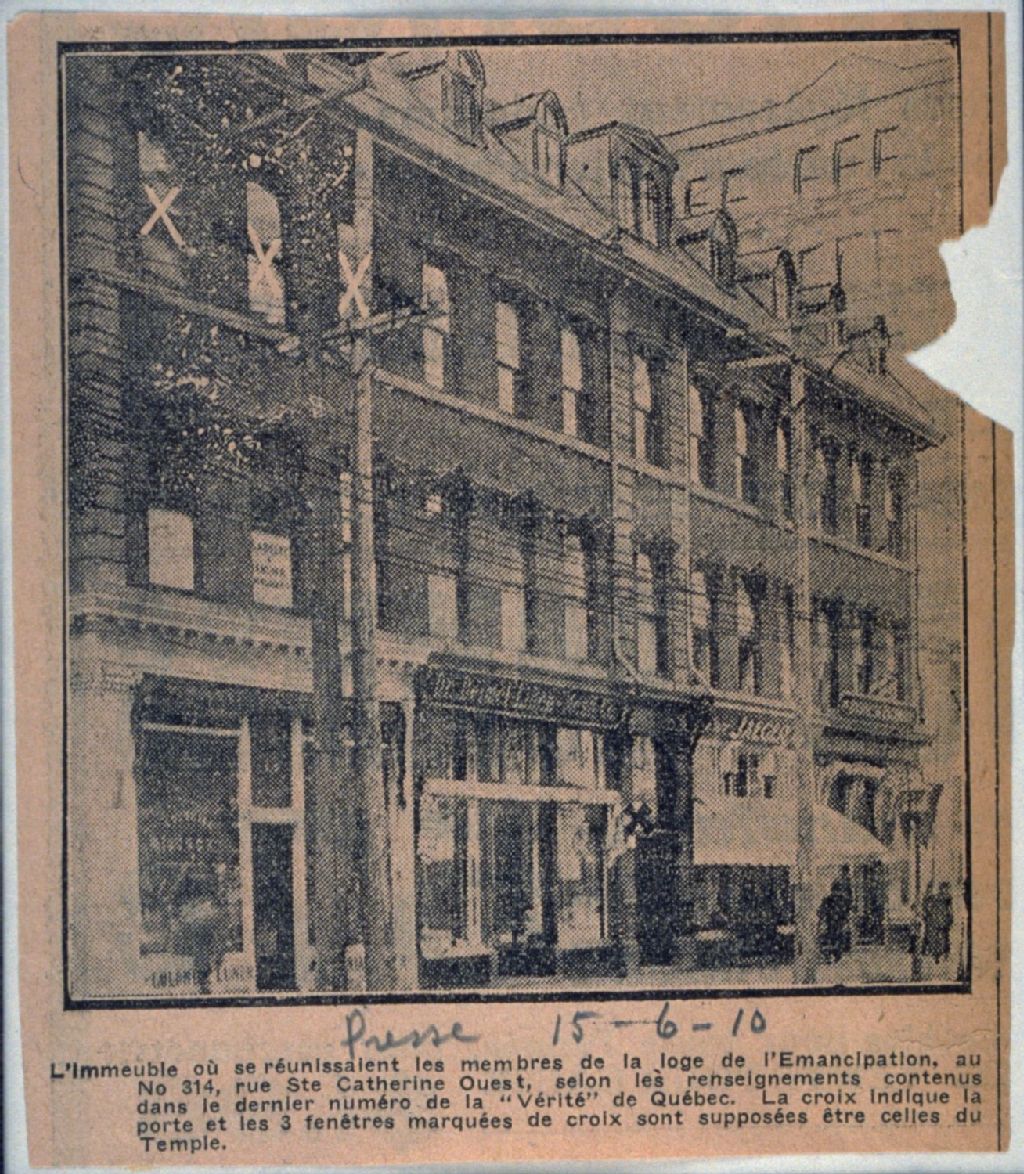 Lieu de réunion de la Loge de l'émancipation - 314 Ste-Catherine