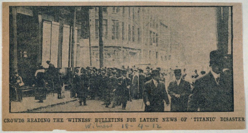 Foule attendant la sortie du journal Witness - rue St-Pierre