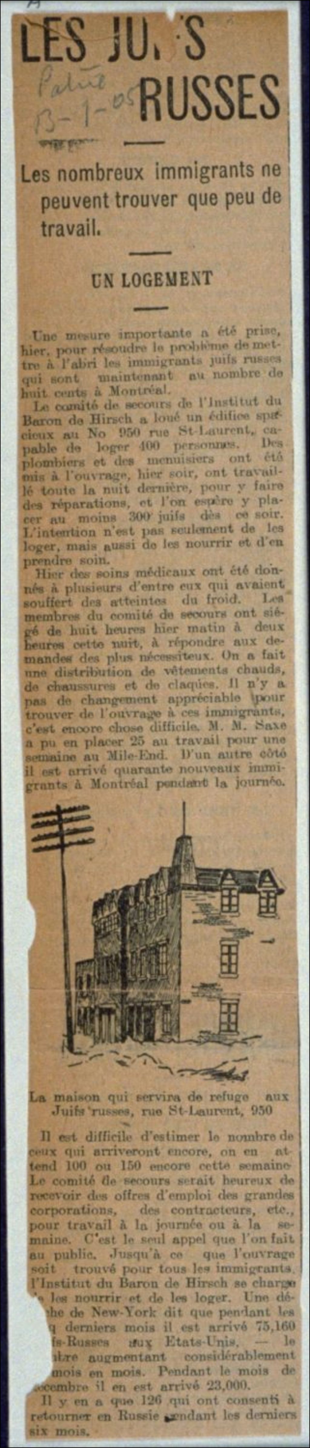 Location d'une maison pour les Juifs Russes - 950 St-Laurent