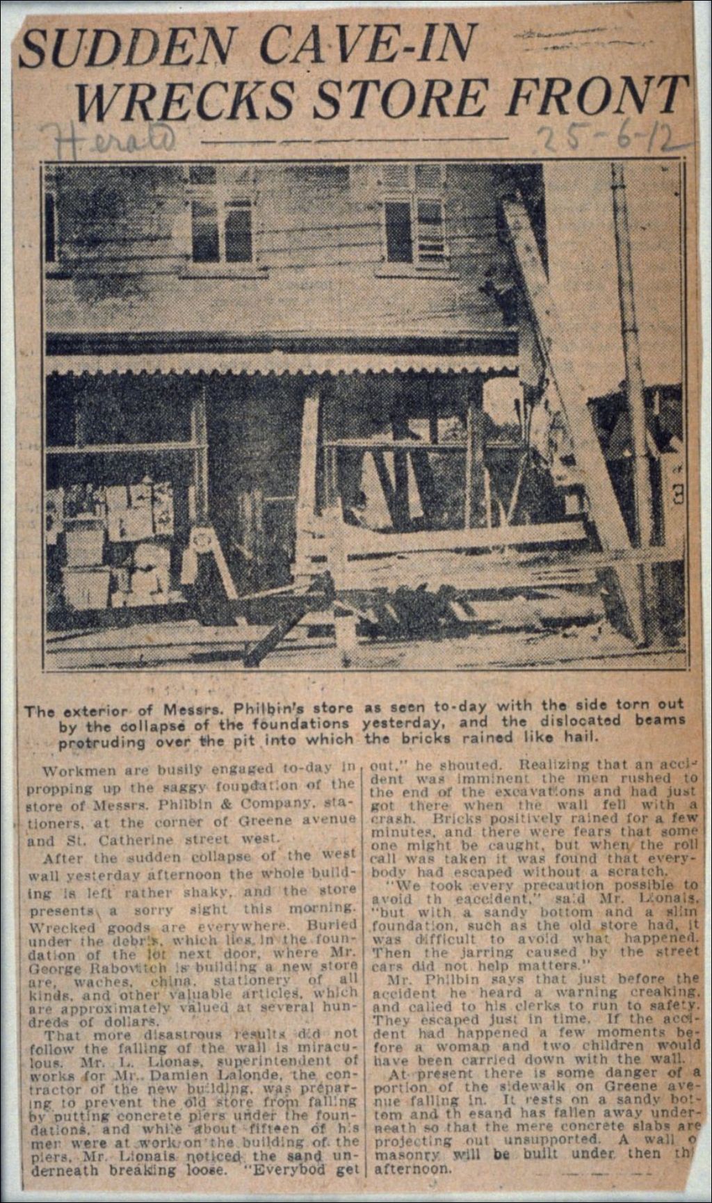 Mur tombé - coin Greene/Ste-Catherine - ville de Westmount