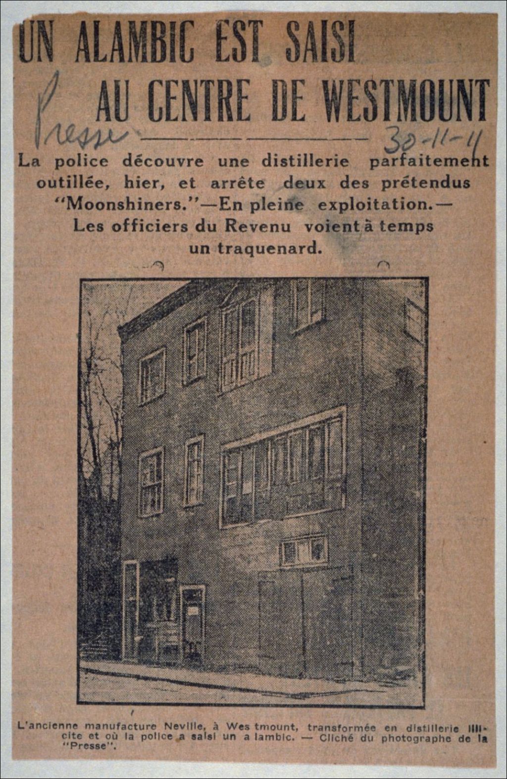 Alambic dans la Neville Manufacture - ville de Westmount