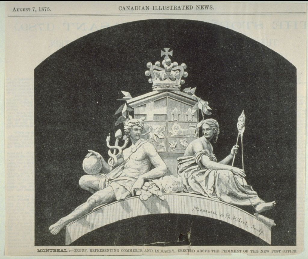 Groupe sculpté «Commerce et industrie» fait par Bourassa & Hébert - Divers