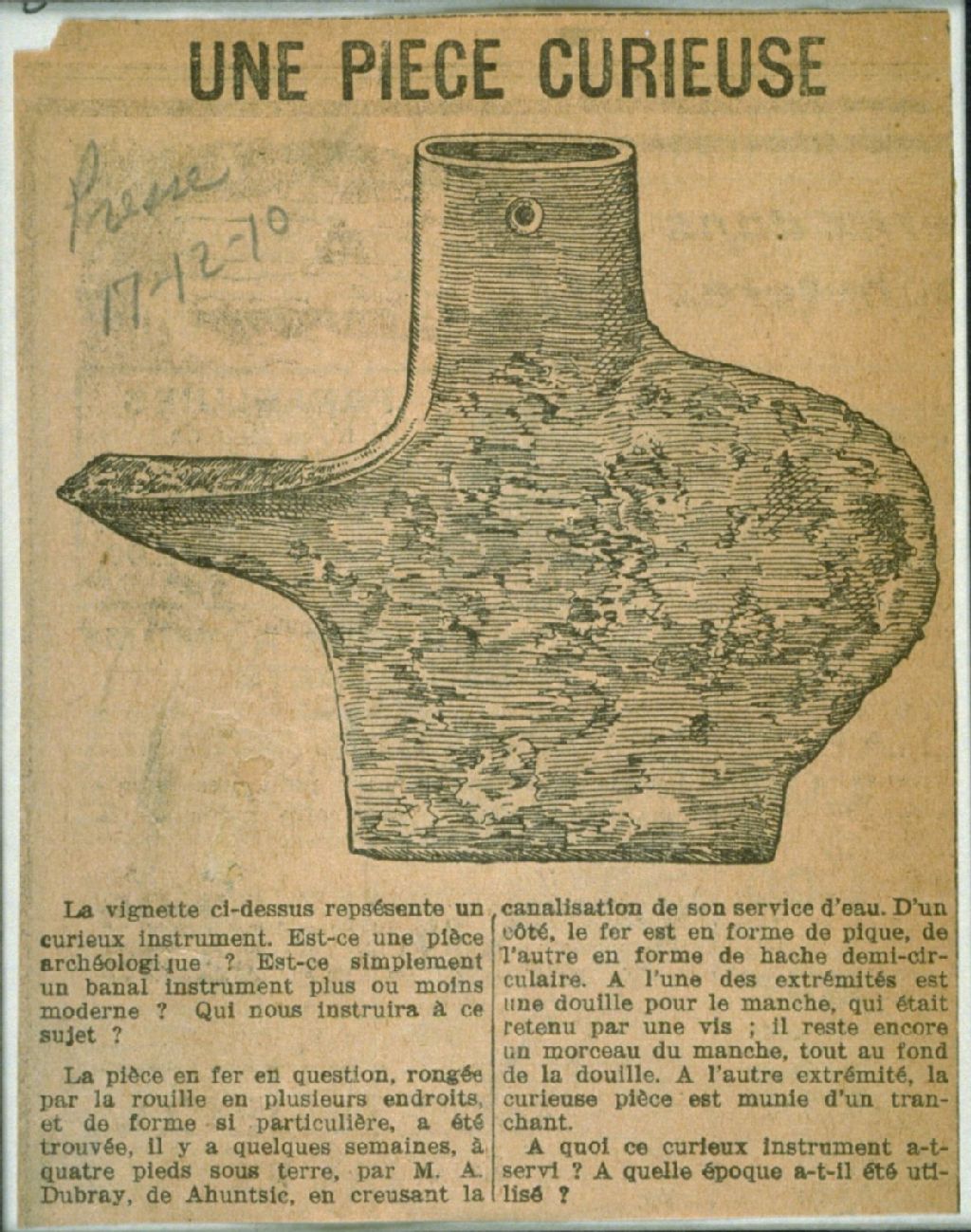 Objet ancien trouvé durant le creusage - Divers