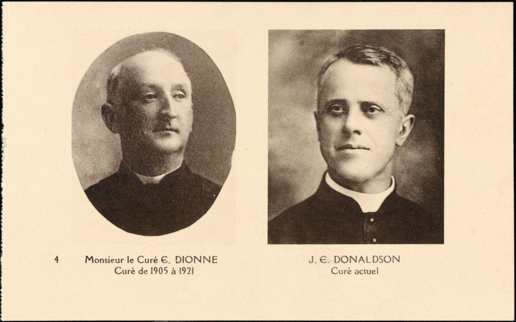 Monsieur le Curé E. Dionne, Curé de 1905 à 1921 J. E. Donaldson Curé actuel
