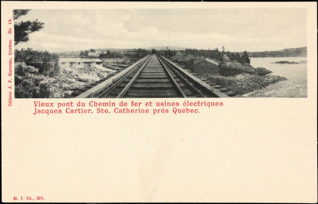 Vieux pont du chemin de fer et usines électriques, Jacques Cartier, Ste. Catherine près Québec