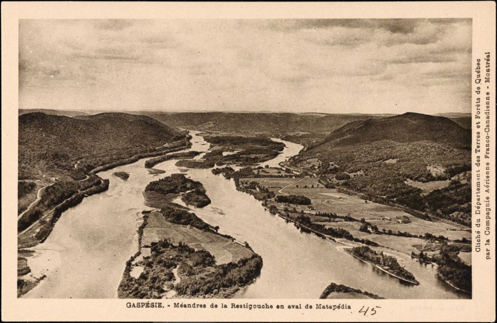 Gaspésie, méandres de la Restigouche [sic] en aval de Matapédia
