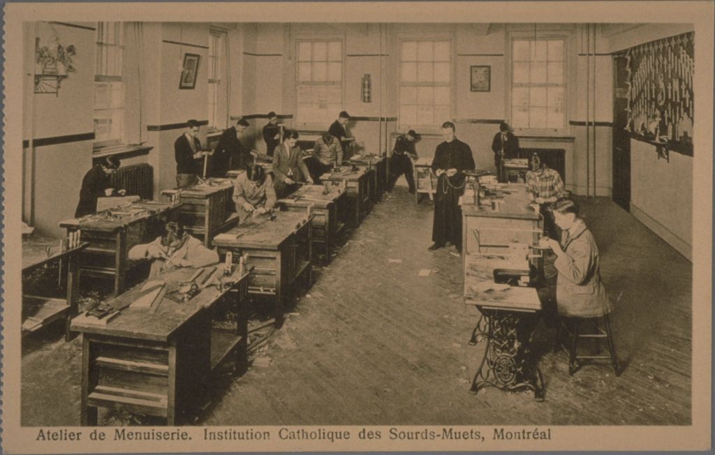 Atelier de Menuiserie. Institution Catholique des Sourds-Muets, Montréal
